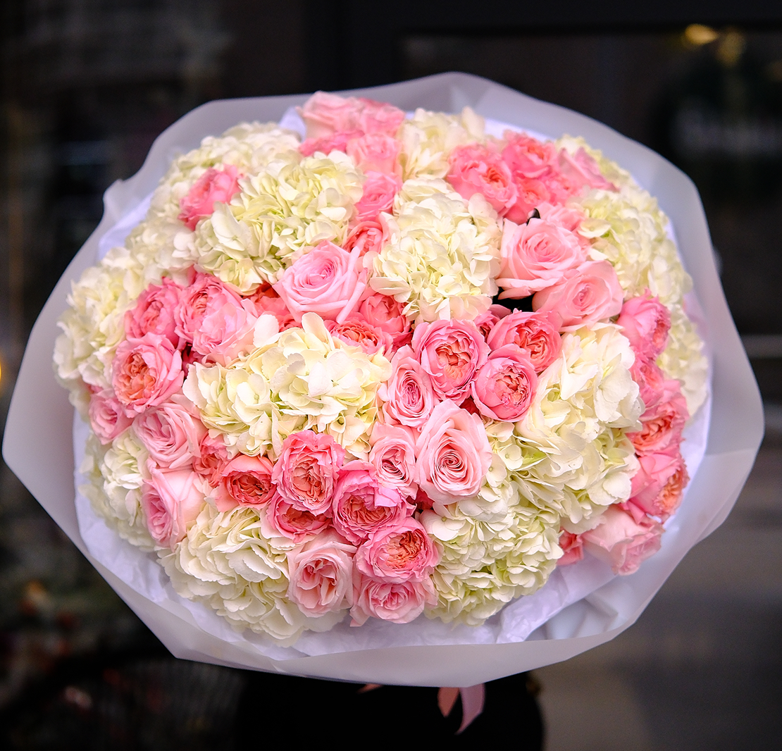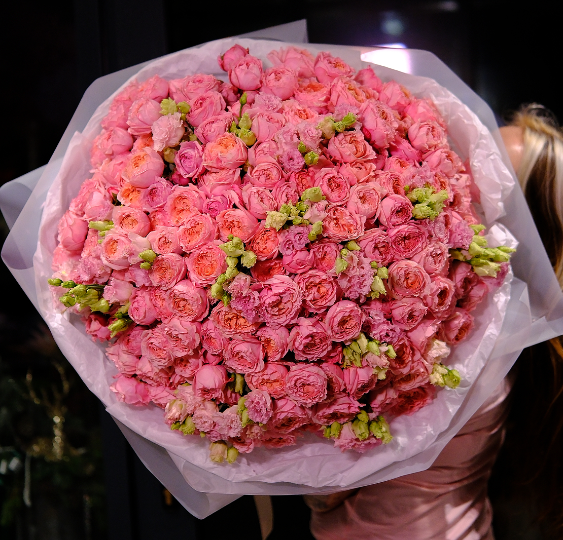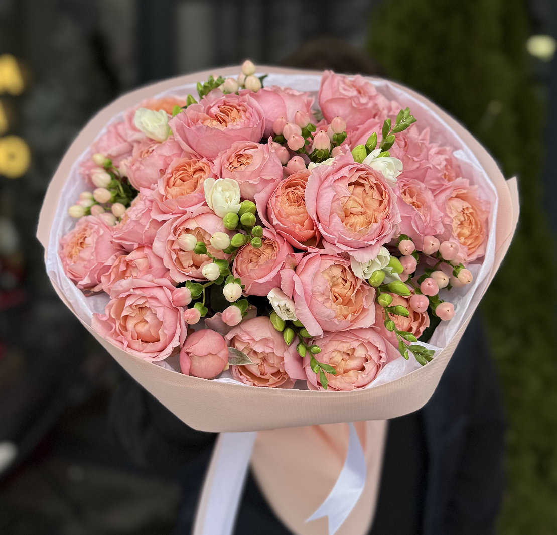 Склад: троянда кущова - 51 шт, евкаліпт - 7 шт.